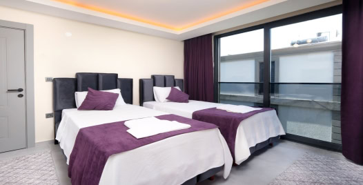 3.Yatak Odası: 2 adet tek kişilik yatak, klima, elbise dolabı, makyaj masası,tuvalet ve banyo bulunmaktadır.