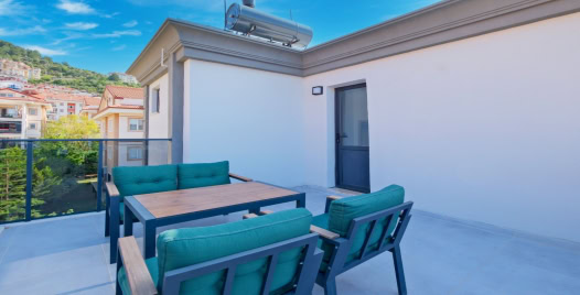 Salon: Özenle döşenmiş salon, modern koltuklar, 6 kişilik yemek masası, LCD TV ve klima bulunmaktadır.
