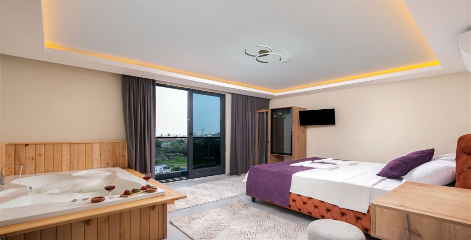1.Yatak Odası: Çift kişilik yatak, jakuzi, klima,elbise dolabı, makyaj masası,tuvalet ve banyo bulunmaktadır.