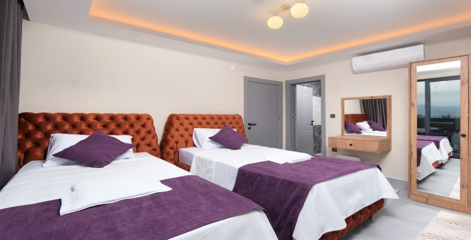 3.Yatak Odası: 2 adet tek kişilik yatak, klima, elbise dolabı, makyaj masası,tuvalet ve banyo bulunmaktadır.