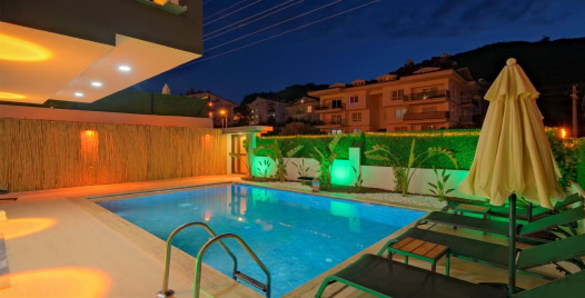 Havuz ve Bahçe: Özel yüzme havuzu,şezlong, şemsiye,bahçe mobilyaları,salıncak ve barbekü bulunmaktadır.