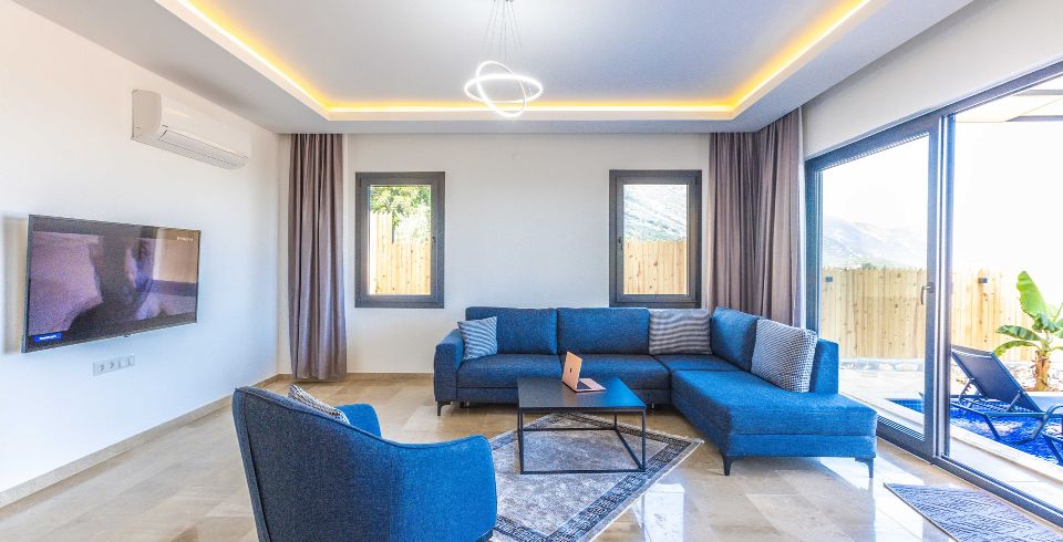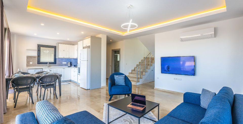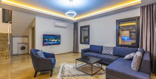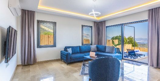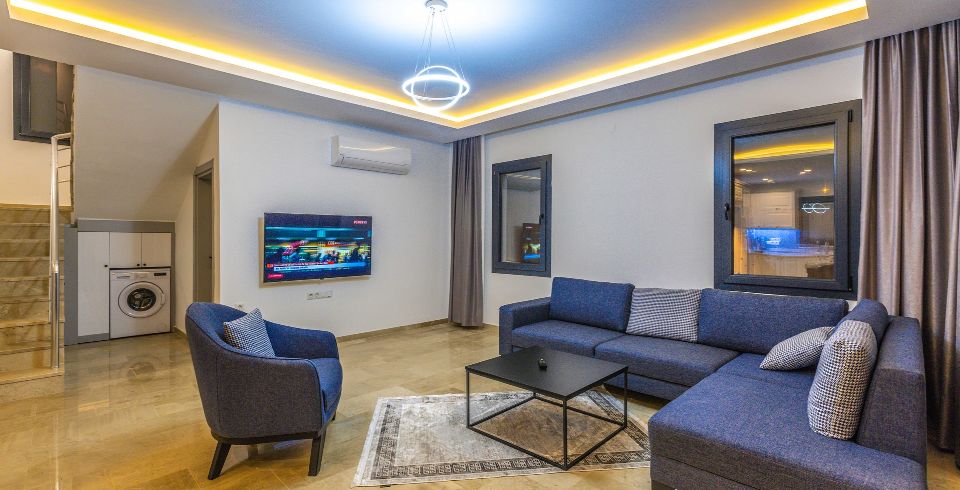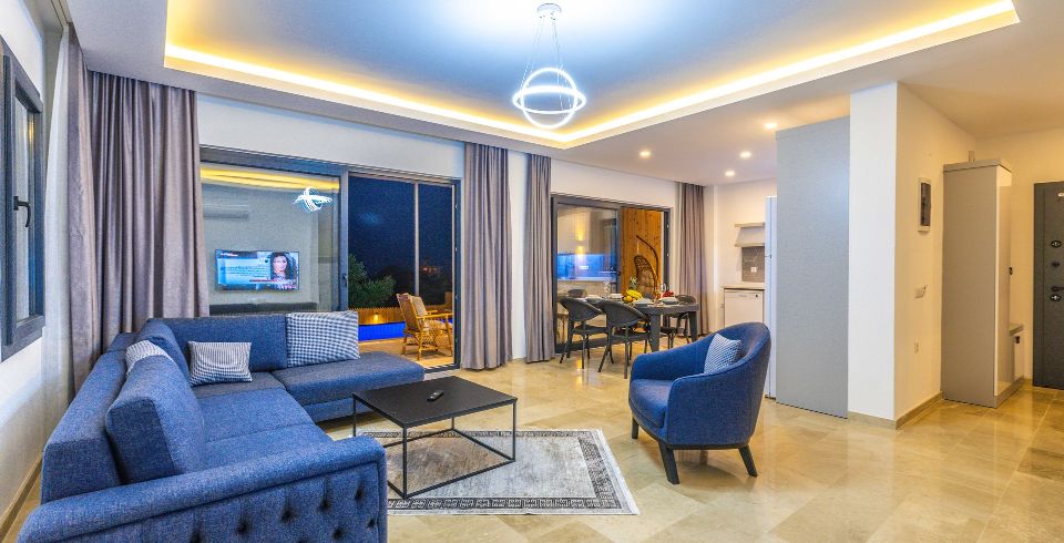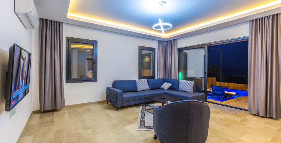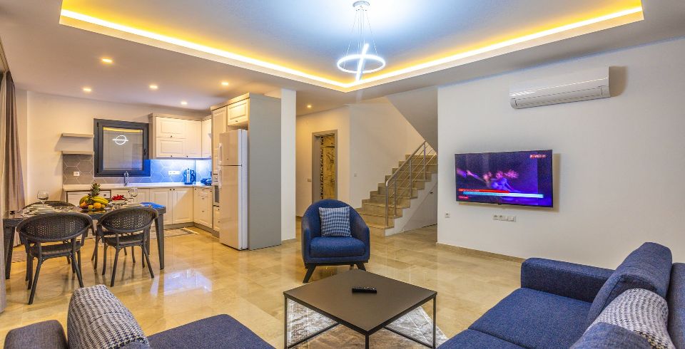 Salon: Salonda klima uydu alıcı, TV, DVD Player, oturma grubu, koltuğu, lavabo yer almaktadır. Salon havuz katındadır. En üst katta dinlenmek ve güneşlenmek için çok geniş bir seyir terası daha vardır. Bu alanda da oturma gurubu, masa ve sandalye bulunur.
