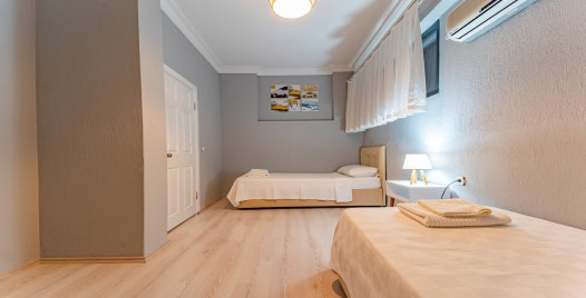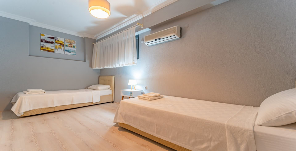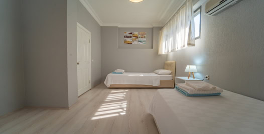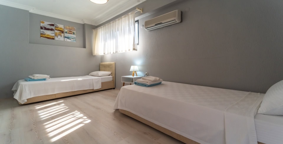 3. Yatak Odası : 2 adet tek kişilik yatak,klima, makyaj masası, klima, komodin ve elbise dolabı, banyo ve tuvalet bulunmaktadır.