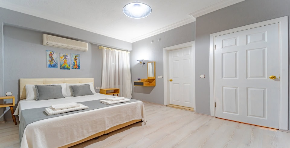 2. Yatak Odası : 1 adet çift kişilik yatak,klima, makyaj masası, klima komodin ve elbise dolabı, banyo ve tuvalet bulunmaktadır.