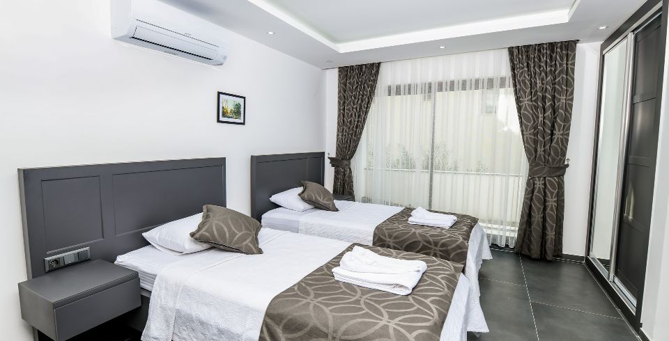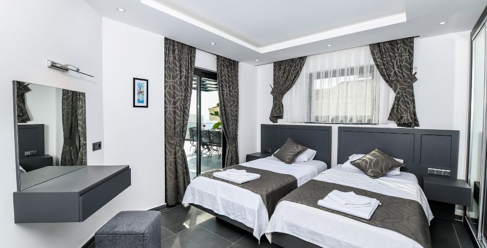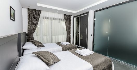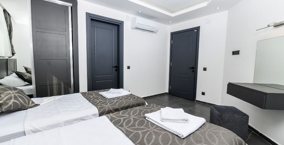 4. Yatak Odası : 2 adet tek kişilik yatak odası, klima, makyaj masası, elbise dolabı, komodin, banyo ve lavabo bulunmaktadır.