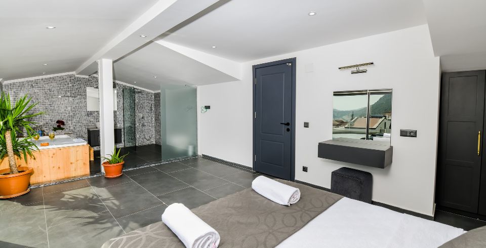 3. Yatak Odası : Çift kişilik süit yatak odası, klima, makyaj masası, elbise dolabı, komodin, banyo ve lavabo bulunmaktadır.