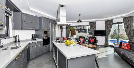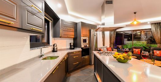 Mutfak : Modern Amerikan mutfakta buzdolabı, bulaşık makinası, fırın, ocak, mikrodalga fırın, ekmek kızartma makinası, kettle, yemek masası, yemek takımları, çatal ve bıçak takımları, tencere ve tava takımları, bardaklar bulunmaktadır.