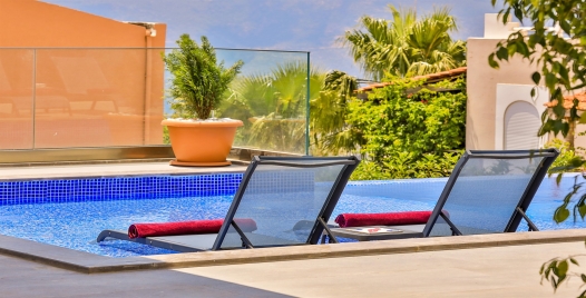 Havuz ve Bahçe : Deniz Manzaralı, Güneşlenme, Özel Havuz, 8 kişilik masa sandalye,8 tane şezlong, Güneşlenme şemsiyesi