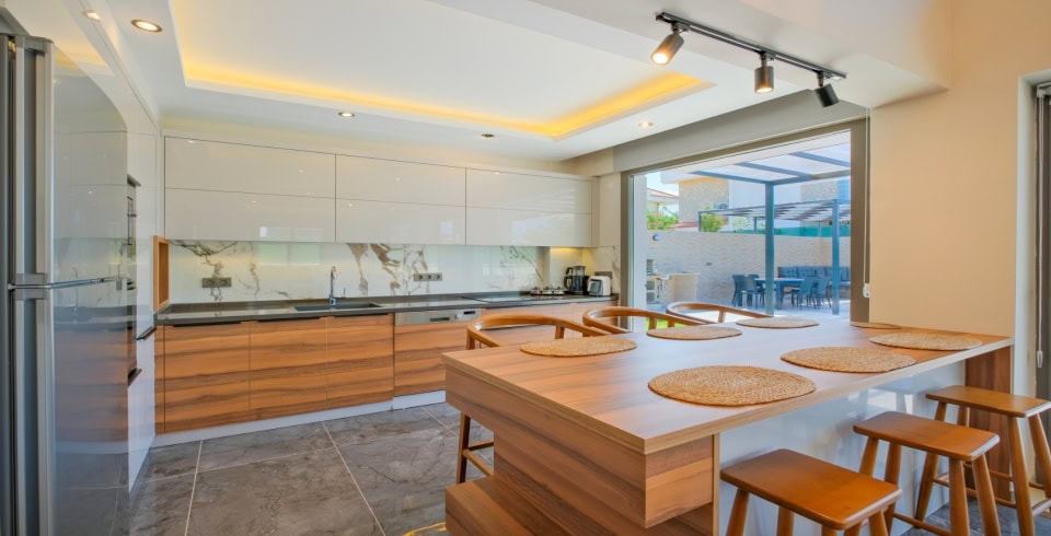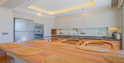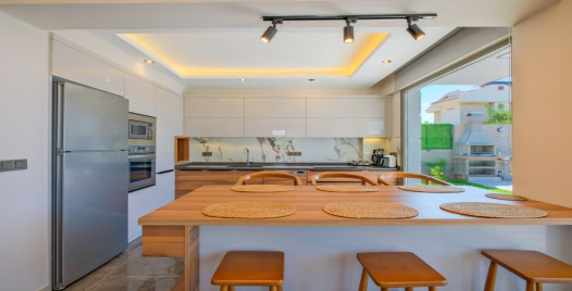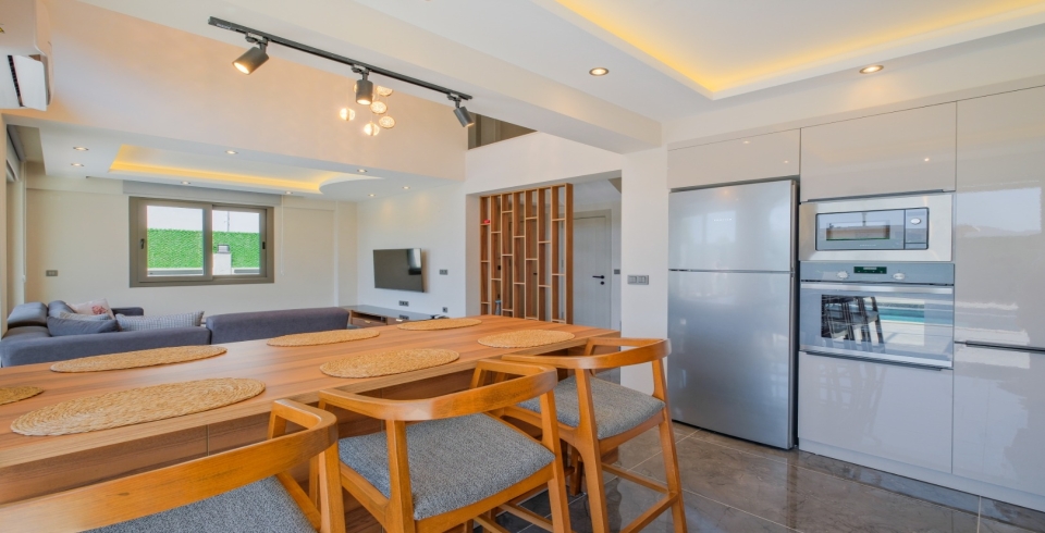 Mutfak:Amerikan mutfak, bulaşık makinası, buzdolabı, ankastre fırın, mikrodalga fırın, ankastre 4'lü ocak, su ısıtıcısı, çamaşır makinesi, tencere ve tava takımı, yemek takımı, kaşık çatal bıçak takımı, bardak takımı, yemek masası, sandalyeler, tost makinesi, kahve makinesi bulunmaktadır.