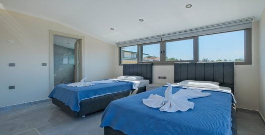 4.Yatak Odası: İki adet tek kişilik yatak, komodin, elbise dolabı,makyaj masası,klima,banyo & wc bulunmaktadır.