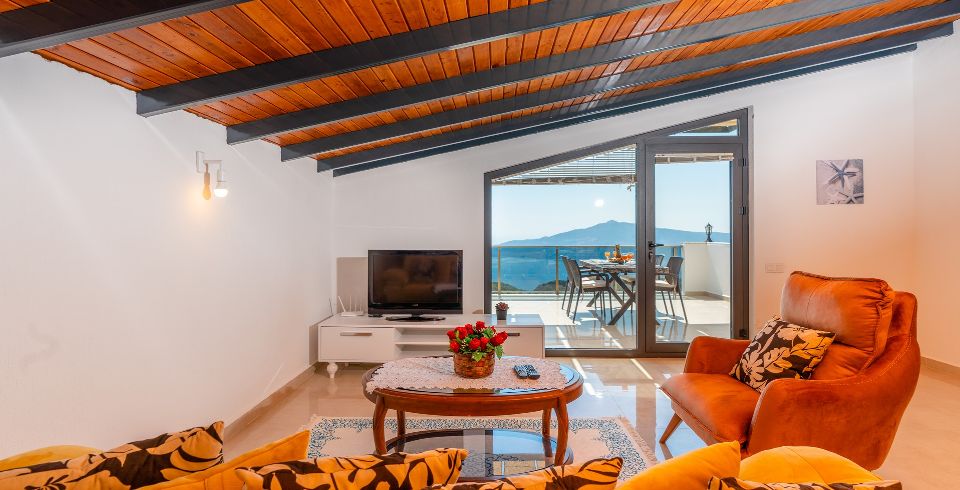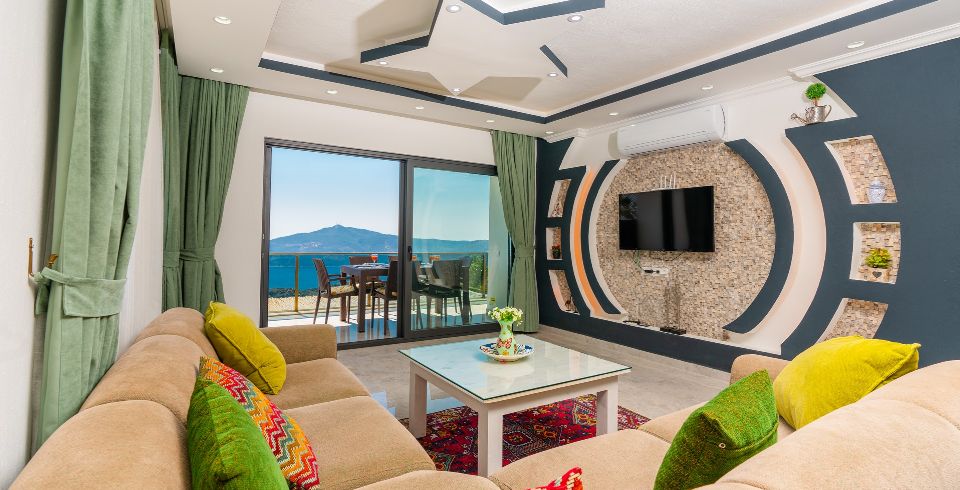 Salon : Salonunda sizi şık bir oturma grubu ile klima, televizyon, internet, uydu, koltuk, sehpa ile ferah bir salon bekliyor olacaktır. Havuz terasına çıkış yapılmaktadır.