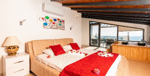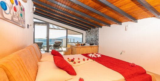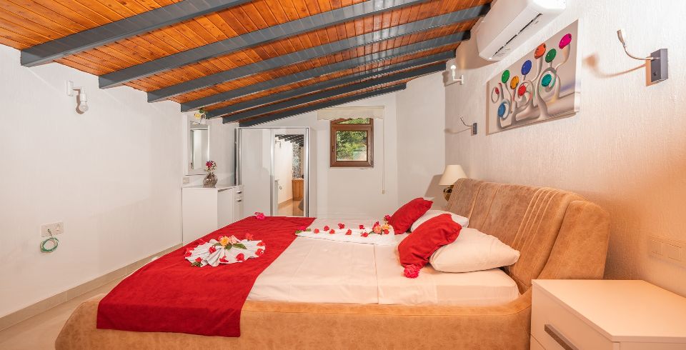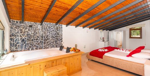 1. Yatak Odası : 1 adet çift kişilik yatak, televizyon, klima, jakuzi, elbise dolabı, makyaj masası, banyo ve lavabo bulunmaktadır.