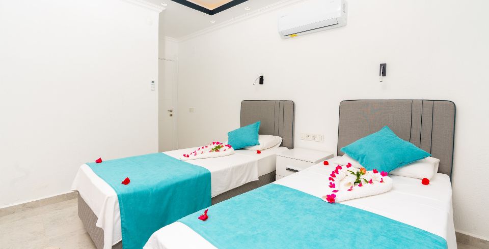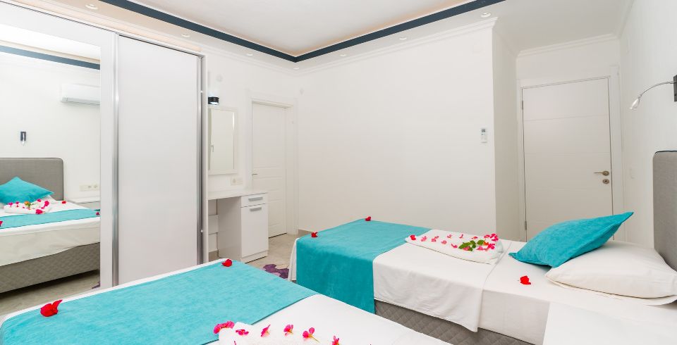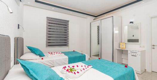 3. Yatak Odası : 2 adet tek kişilik yatak, televizyon, klima, elbise dolabı, makyaj masası, banyo ve lavabo bulunmaktadır.