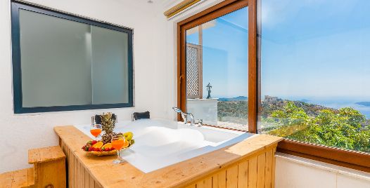 Villa Alkım Bade , Kalkan Kördere mevkiinde bulunan 6 kişilik konaklama kapasitesi ile 3 yatak odası ve 3 banyoya sahiptir. Doğa içerisinde deniz manzarasına sahip villamızda özel dizayn edilmiş yüzme havuzu mevcuttur. Korunaklı yüzme havuzu bulunan villamız muhafazakar aileler tarafından tercih edilmektedir. Kalkan'ın büyüleyici günbatımını seyredebileceğiniz hafızalara kazınacak bir villa tatili geçirmeye hazır olun.