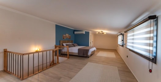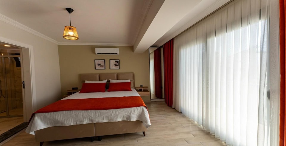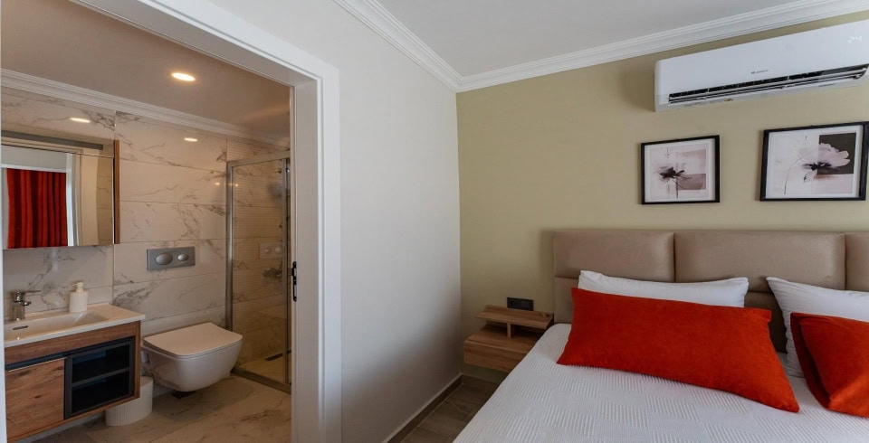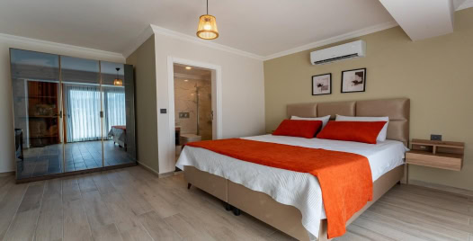 1. Yatak Odası: 1 çift kişilik yatak, komodin, banyo/WC, klima, elbise dolabı, bulunmaktadır.