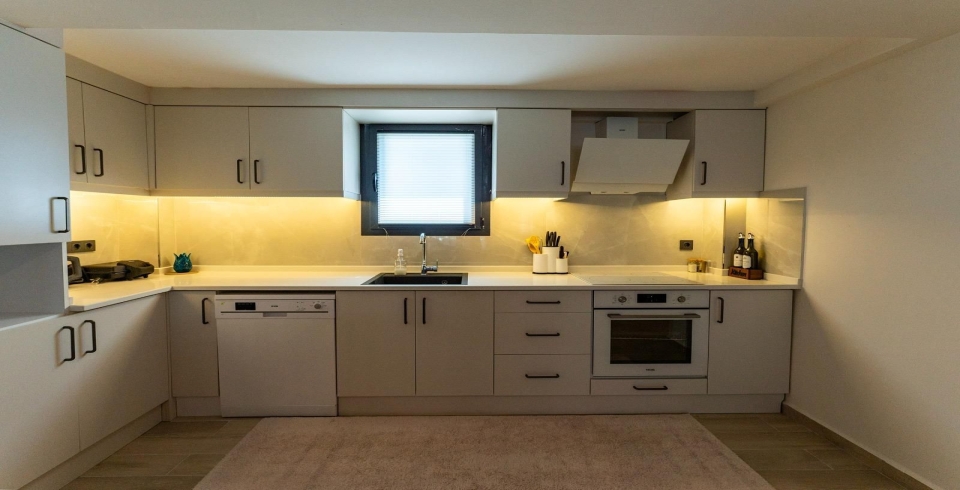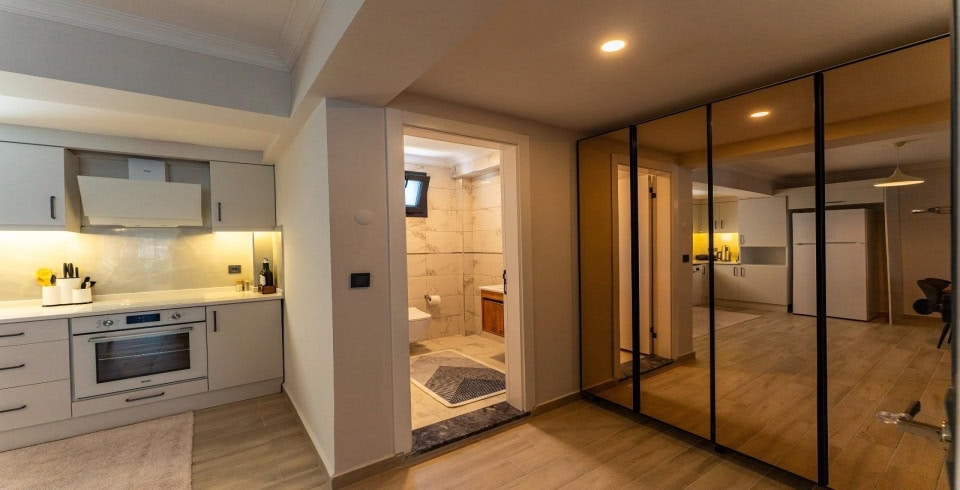 Mutfak: Amerikan mutfak, bulaşık makinası, buzdolabı, ankastre fırın, ankastre 4’lü ocak, su ısıtıcısı, tencere ve tava takımı, yemek takımı, kaşık çatal bıçak takımı, bardak takımı, yemek masası, sandalyeler, çamaşır makinesi. bulunmaktadır.
