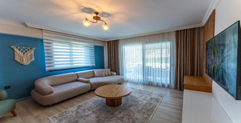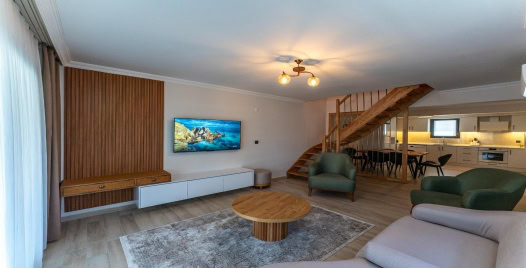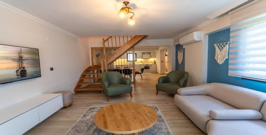 Salon: Konforlu oturma grubu, TV, orta sehpa , klima bulunmaktadır.
