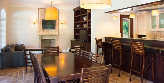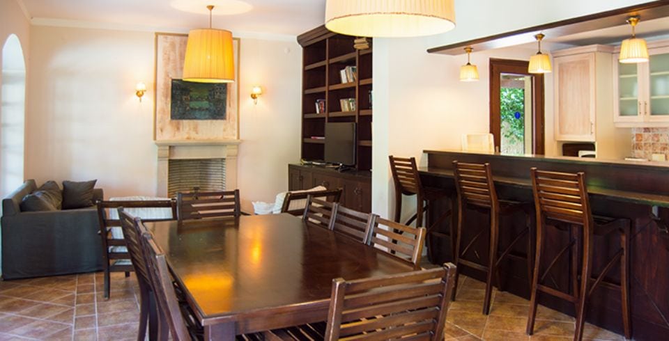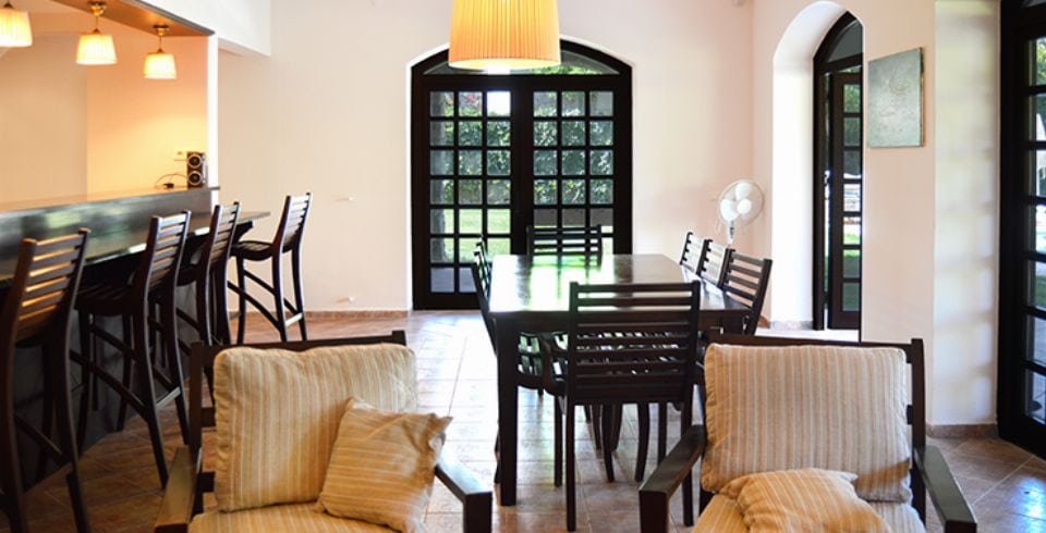 Salon : Villamızın Salonunda oturma grubu, TV, uydu, internet, klima, ve havuz terasına çıkış yapılabilmektedir.