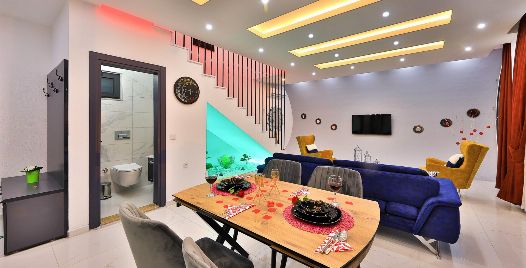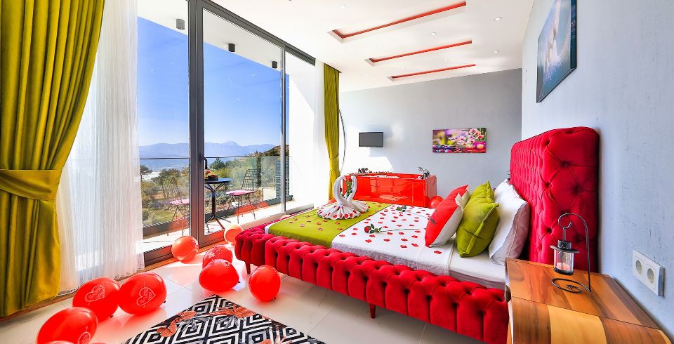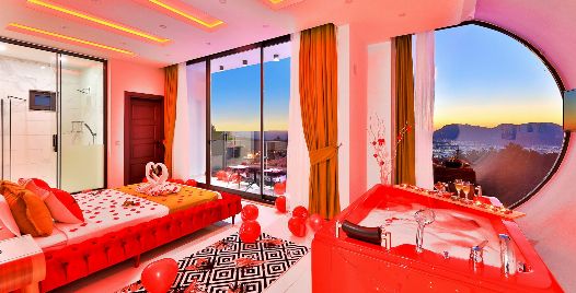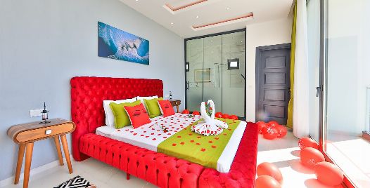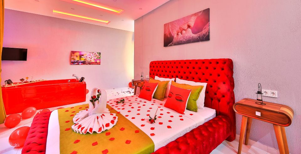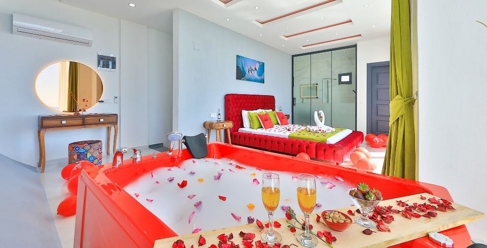 Yatak Odası : 1 adet çift kişilik yatak, televizyon, klima, jakuzi, komodin, elbise dolabı, makyaj masası, banyo ve lavabo bulunmaktadır.