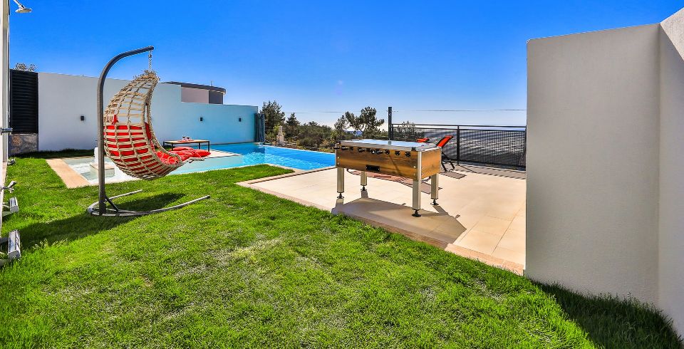 Bahçe : Villamızın bahçesinde özel yüzme havuzu, güneşlenmeniz için şezlong, salıncak, güneşlenme terası, 4 kişilik masa, oturma grubu, mangal keyfiniz için barbekü, güneş şemsiyesi bulunmaktadır.