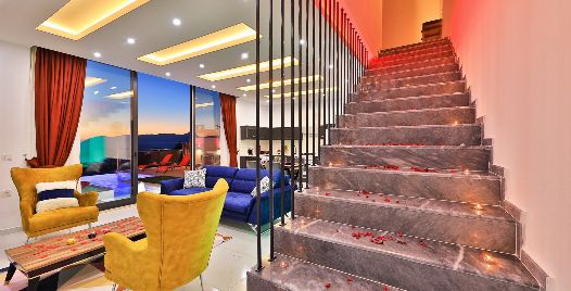 Villa Alyans, Kalkan’ın Üzümlü bölgesi İslamlar köyü sınırlarında muhteşem doğa manzarasıyla konumlanmış tek yatak odalı, 2 kişilik bir balayı villasıdır. 2022 yılında tamamlanmış modern dubleks yapısıyla şık ve konforlu bir tatil deneyimi sunar. Özel, tamamen korunaklı yüzme havuzu sayesinde dışarıdan görünmeden yüzebilir; jakuzili yatak odası ve terasla romantik bir atmosfer yakalayabilirsiniz.