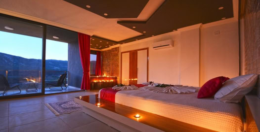 2. Yatak Odası : 1 adet çift kişilik yatak, komodin, klima, makyaj masası, banyo ve lavabo bulunmaktadır.