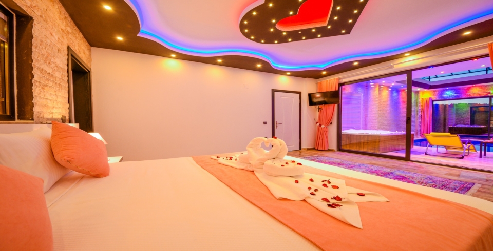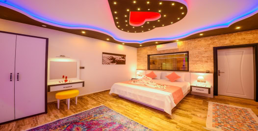 1. Yatak Odası : Çift kişilik yatak, klima, komodin, jakuzi, makyaj masası, banyo ve lavabo bulunmaktadır.