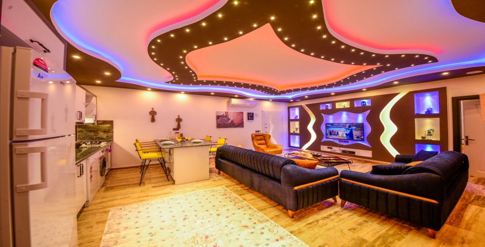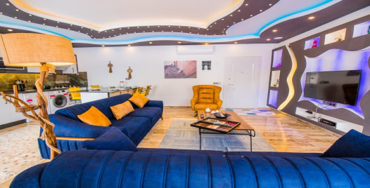 Salon : Villa salonunda oturma grubu, TV, internet, klima, sehpa bulunmaktadır.