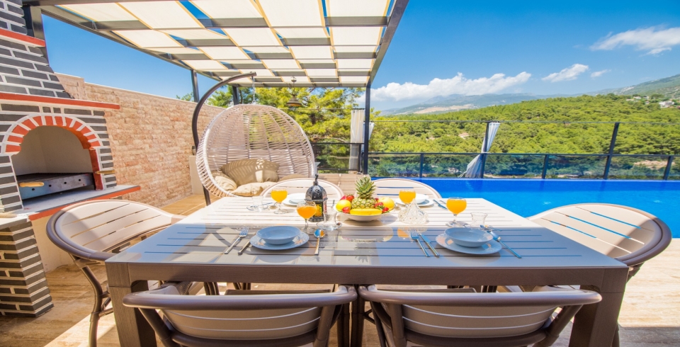 Havuz ve Bahçe : Özel yüzme havuzu, barbekü, salıncak, oturma alanı, şezlong, şemsiye bulunmaktadır. Villamızın havuz terası muhafazakar olup dışarıdan gözükmemektedir.