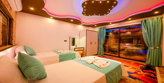 2. Yatak Odası : 2 adet tek kişilik yatak, komodin, klima, makyaj masası, banyo ve lavabo bulunmaktadır.