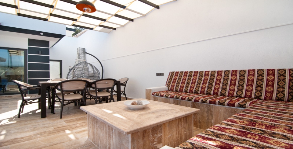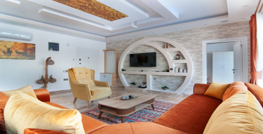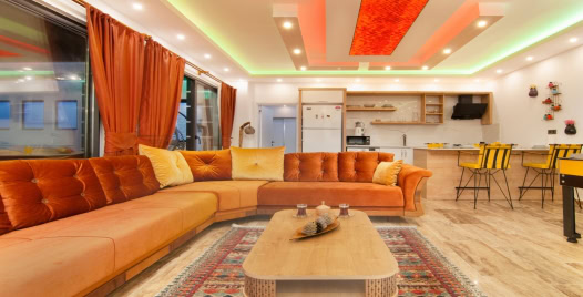 Salon : Villa salonunda oturma grubu, TV, internet, klima, sehpa bulunmaktadır.