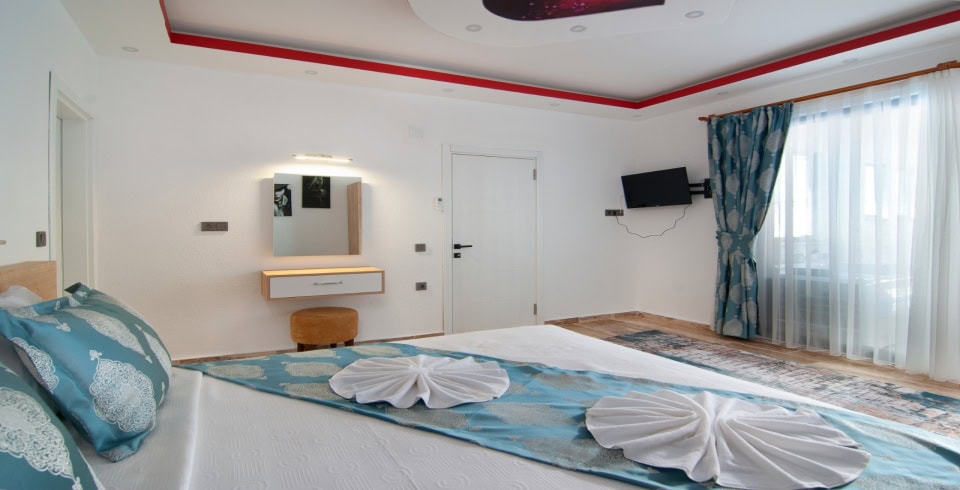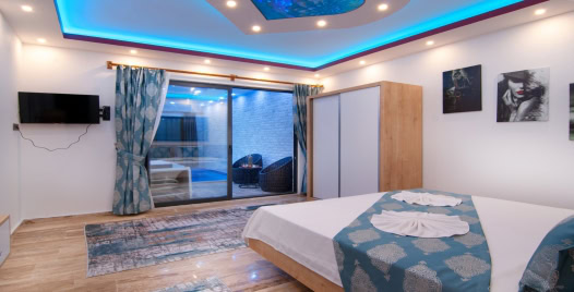 1. Yatak Odası : Çift kişilik yatak, klima, komodin, jakuzi, makyaj masası, banyo ve lavabo bulunmaktadır.