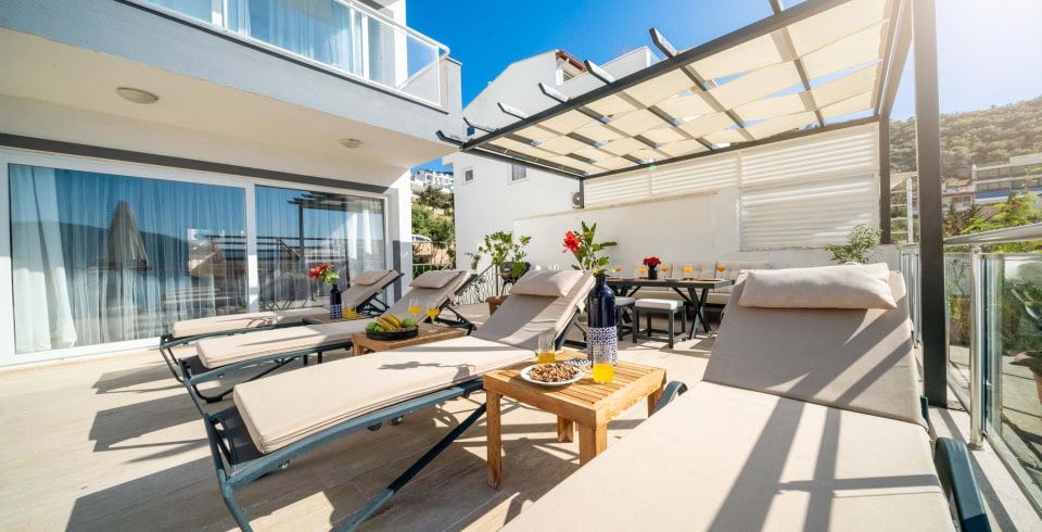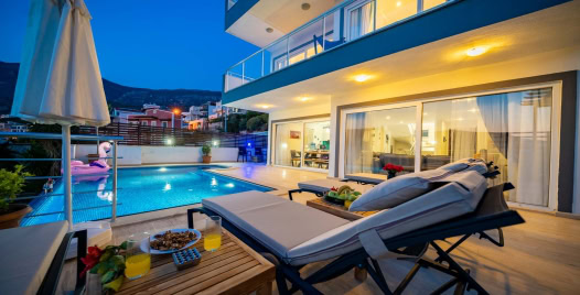 Villa Angel, Kalkan Kışla Koyunda 5 yatak odalı kiralık villamız 10 kişilik kapasiteye sahiptir. Muhteşem deniz manzarasına sahip villamızda sevdiklerinizle gün batımını izleyebilirsiniz. Kalabalık aileler ve arkadaş grupları için ideal villalarımızdan bir tanesidir. Ayrıca plaja ve şehir merkezine yürüme mesafesinde yer almaktadır.