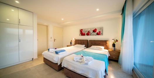 5. Yatak Odası : İki adet tek kişilik yatak, komodin, elbise dolabı, makyaj masası, klima, banyo - tuvalet saç kurutma makinesi bulunmaktadır.