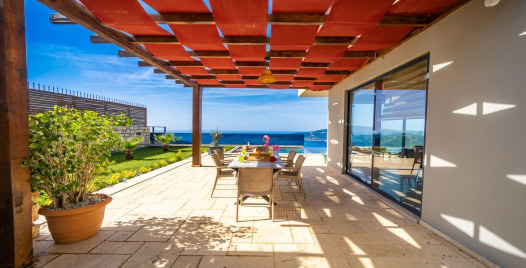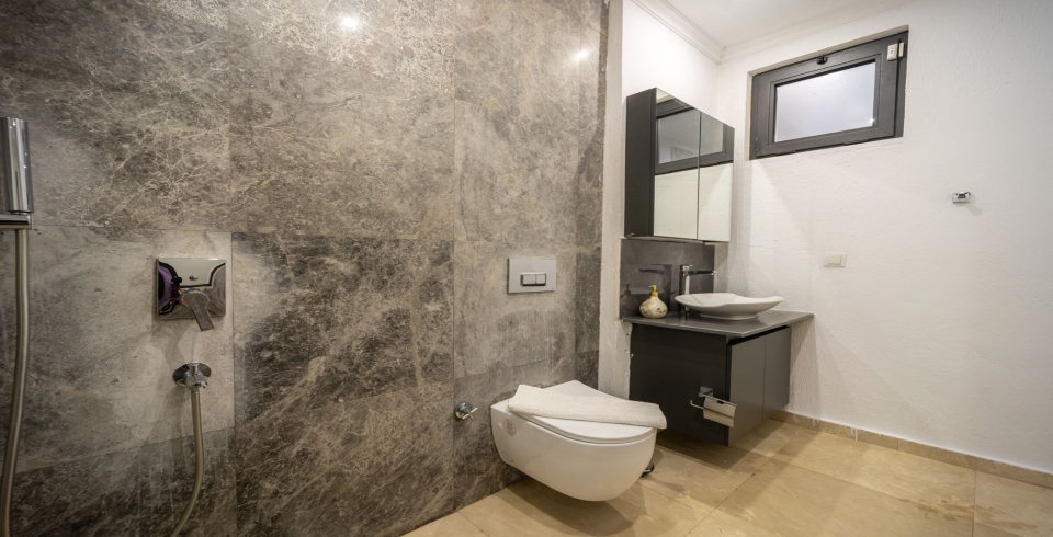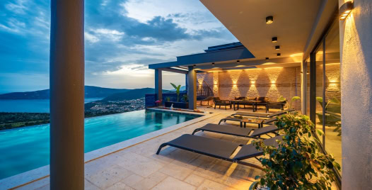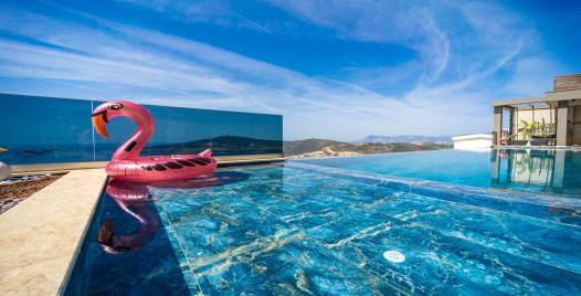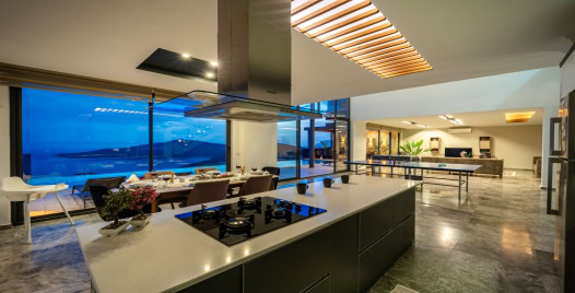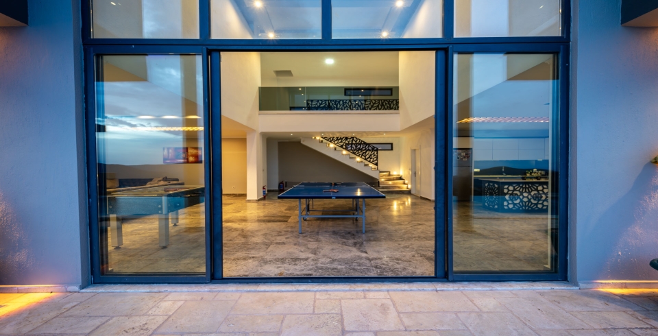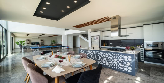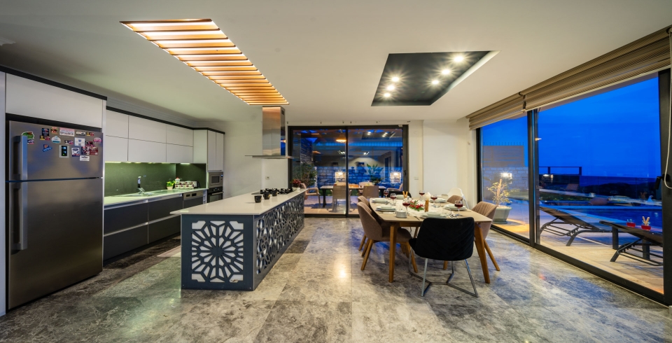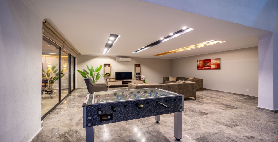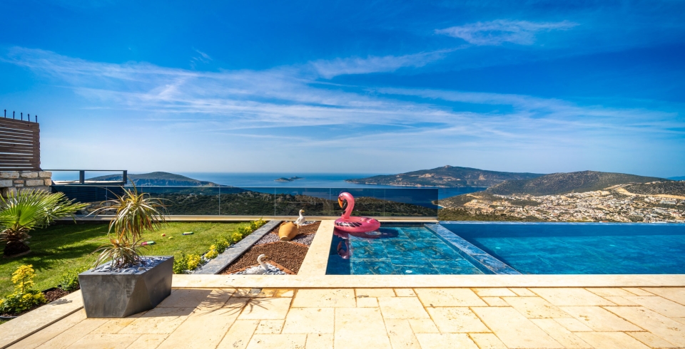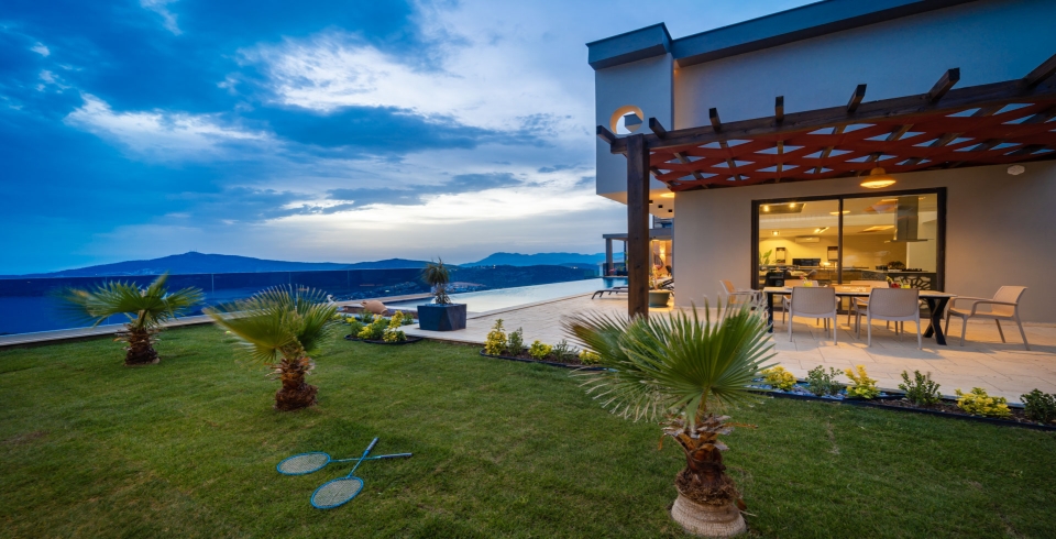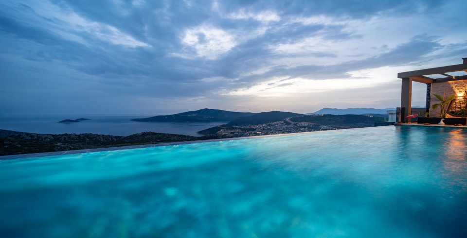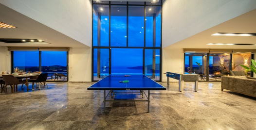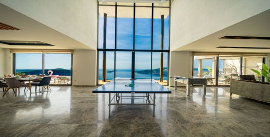Geniş sonsuzluk havuzunda serinlerken gökyüzüyle birleşen ufka dalabilir, günün yorgunluğunu hamam, sauna ya da jakuzi keyfiyle geride bırakabilirsiniz. Aileler ve arkadaş grupları için ideal olan bu villa, kısmi korunaklı havuz terası sayesinde muhafazakar ailelerin de huzurla tercih edebileceği bir seçenektir. Eğlenceye doyacağınız villa içerisinde langırt, masa tenisi ve bahçede çocuklar için özel bir oyun parkı da bulunmaktadır.
