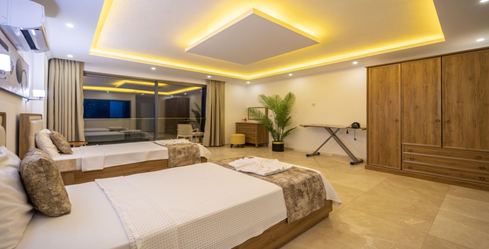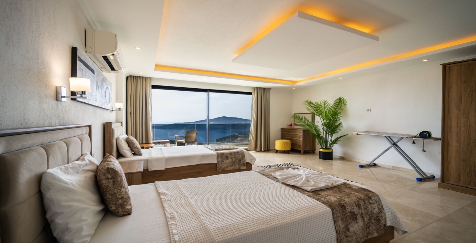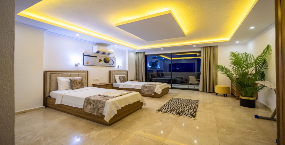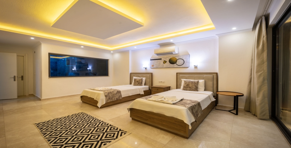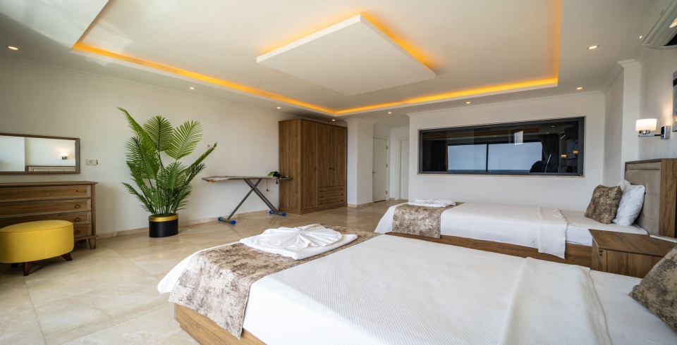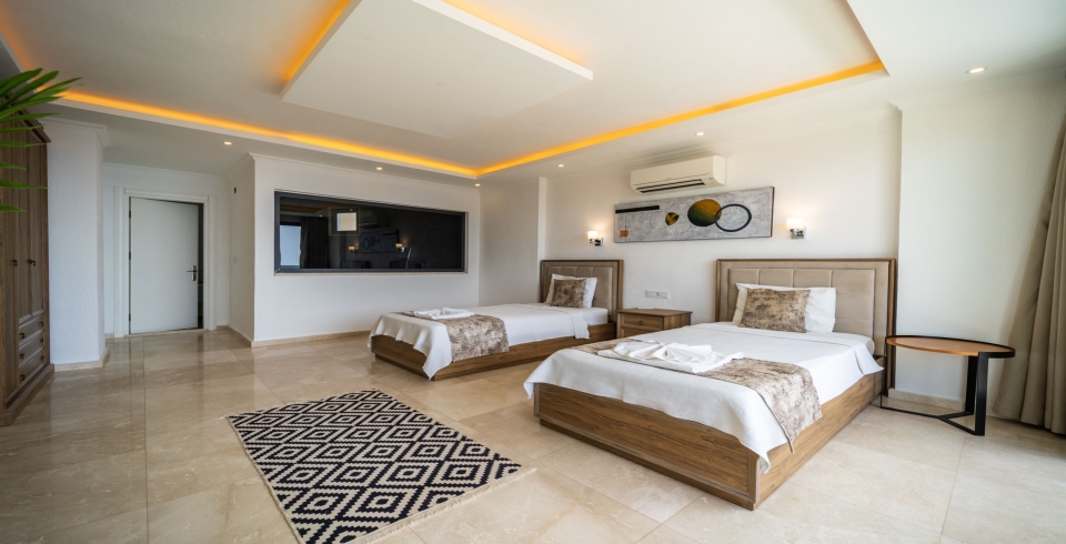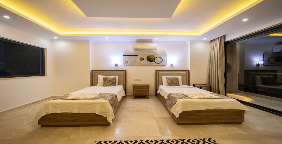 3. Yatak Odası : 2 adet tek kişilik yatak, klima, komodin, makyaj masası, banyo ve lavabo bulunmaktadır.