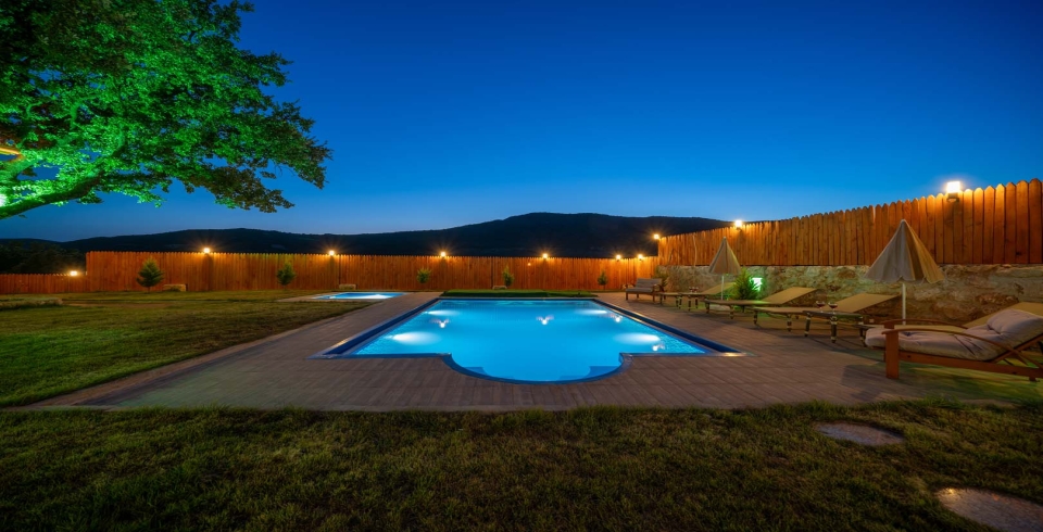 Havuz ve Bahçe: Oldukça geniş ve lüks bir havuza sahip bu villamızın havuz ölçüleri 4 Metre X 8 Metre genişliğinde olup, 1,5 Metre derinliğindedir.