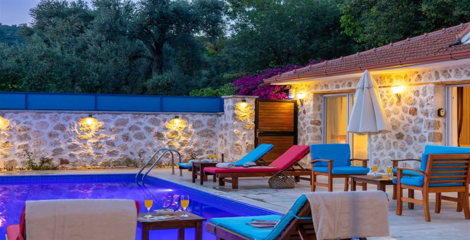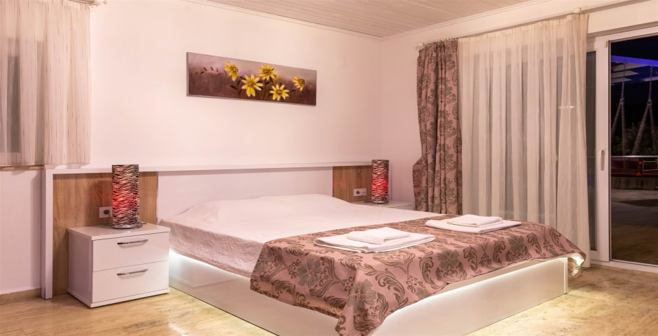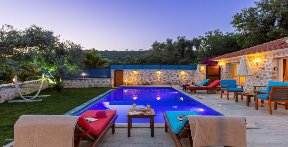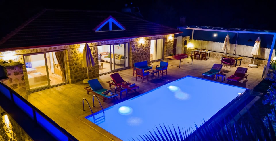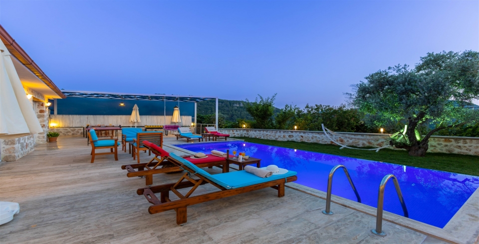 Kalkan Üzümlü mevkisinde bulunan Villa Araf, 2 yatak odası ile 4 kişi konaklama kapasitesine sahiptir. Çekirdek aileler ve balayı çiftleri için uygun olan villamızın ebeveyn yatak odasında jakuzi bulunmaktadır. doğa içerisinde gözlerden uzak keyif solu bir tatil geçirebileceğiniz villamız muhafazakar ailelerimiz için de oldukça uygun bir seçenektir.