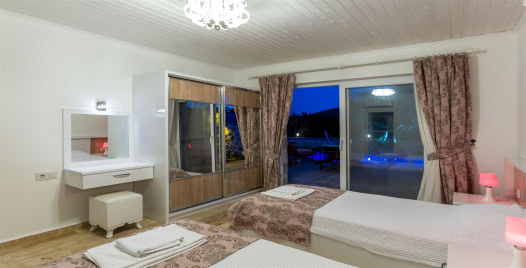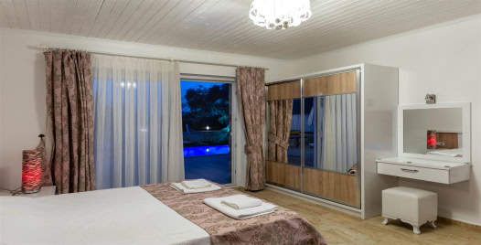 1.Yatak Odası: Çift kişilik yatak , jakuzi , klima , komodin , elbise dolabı , makyaj masası , banyo ve lavabo bulunmaktadır.
