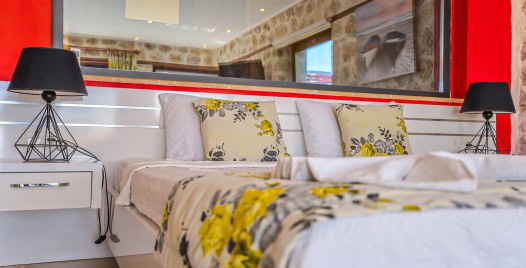 1. Yatak Odası : Çift kişilik yatak ,klima, jakuzi, komodin, elbise dolabı, makyaj masası banyo ve tuvalet bulunmaktadır.