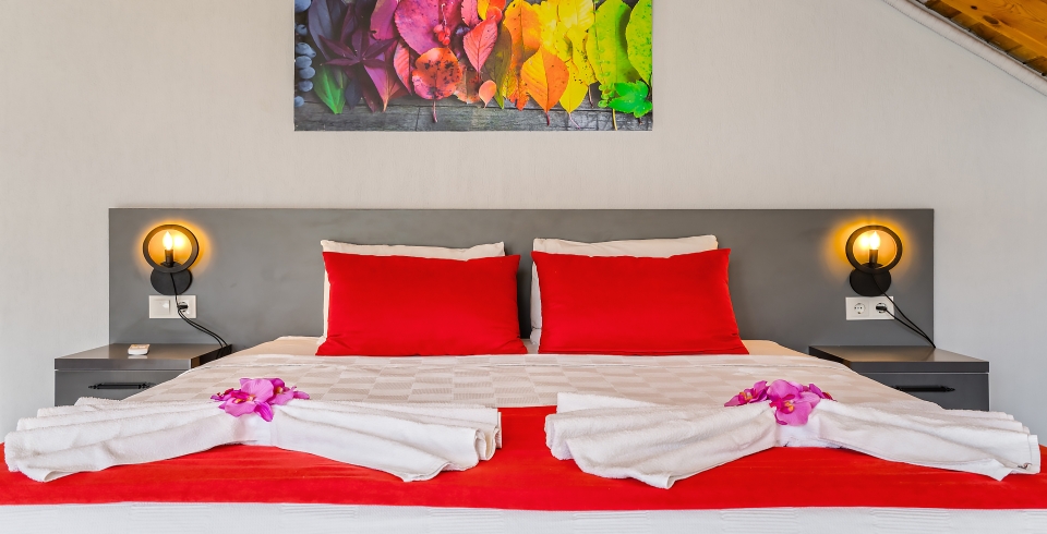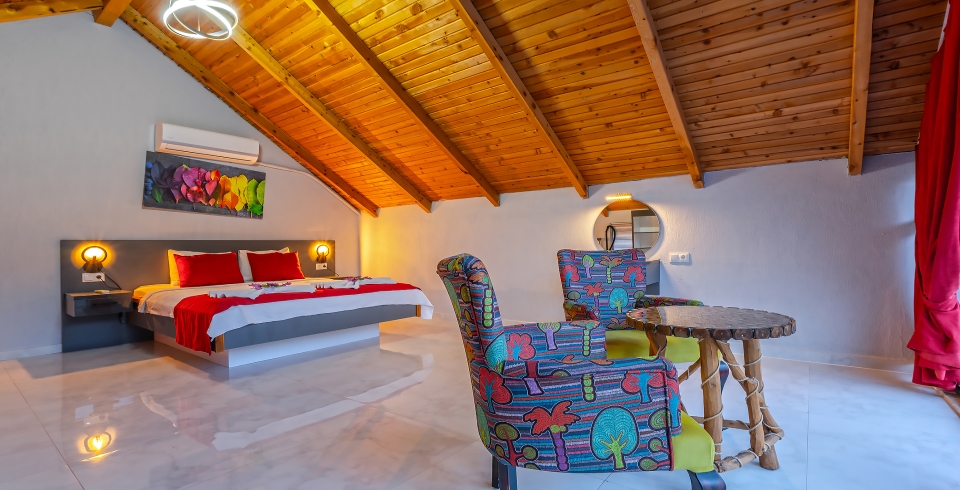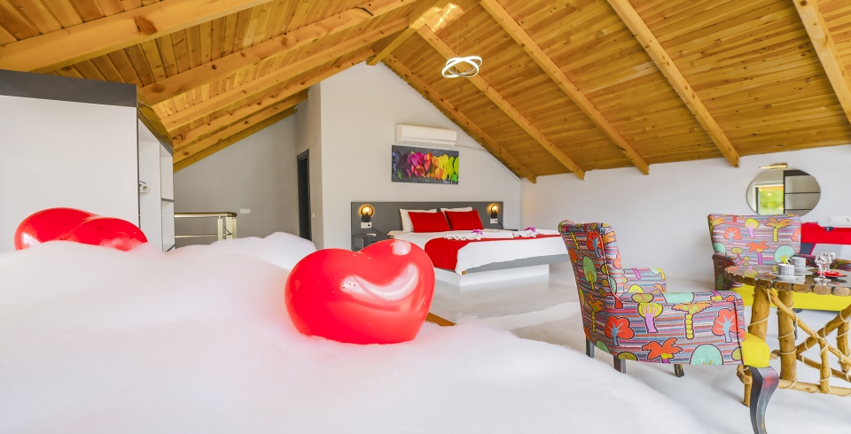 1. Yatak Odası : Çift kişilik yatak ,klima, jakuzi, komodin, elbise dolabı, makyaj masası banyo ve tuvalet bulunmaktadır. 2. Kattadır.
