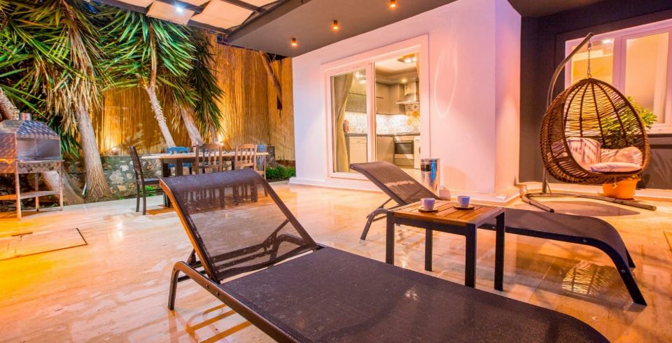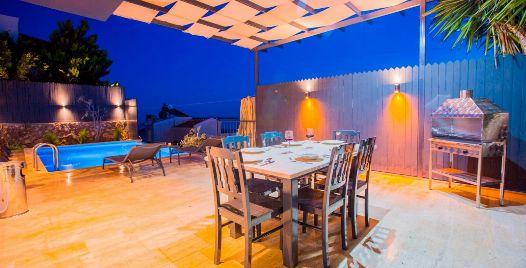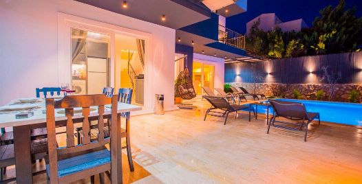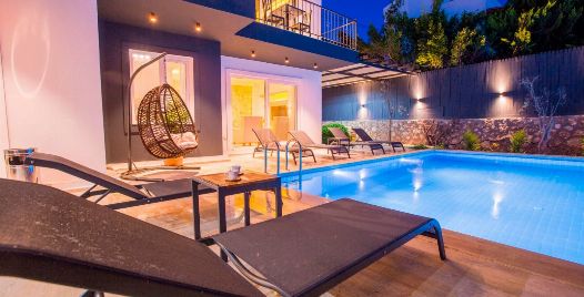 Bahçe : Villamızın bahçesinde özel yüzme havuzu, güneşlenmeniz için 4 adet şezlong, güneşlenme terası, 6 kişilik masa, oturma grubu, mangal keyfiniz için barbekü, güneş şemsiyesi, hamak ve salıncak bulunmaktadır.