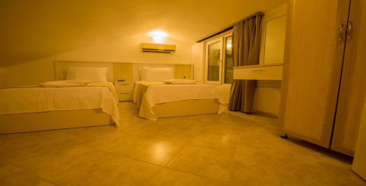 2. Yatak Odası : 2 adet tek kişilik yatak, klima, elbise dolabı, makyaj masası, komodin, banyo ve lavabo bulunmaktadır.