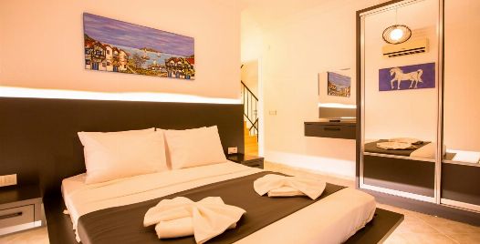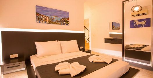 3. Yatak Odası : 1 adet çift kişilik yatak, televizyon, klima, elbise dolabı, makyaj masası, banyo ve lavabo bulunmaktadır.