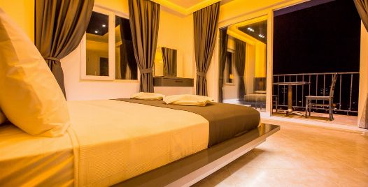 1. Yatak Odası : 1 adet çift kişilik yatak, televizyon, klima, jakuzi, elbise dolabı, makyaj masası, banyo ve lavabo bulunmaktadır.