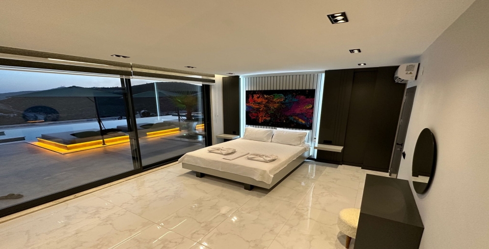 3. Yatak Odası: Bir adet çift kişilik yatak, elbise dolabı, komodin, klima, makyaj masası, jakuzi , TV ve banyo ve tuvalet bulunmaktadır.
