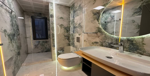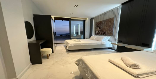 4. Yatak Odası: Bir adet çift kişilik yatak, Bir adet tek kişilik yatak elbise dolabı, komodin, klima, makyaj masası, TV ve banyo ve tuvalet bulunmaktadır.