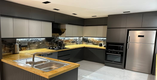 Mutfak : Şık ve modern Amerikan mutfakta bulaşık makinesi, buzdolabı, fırın, ocak, kettle, ekmek kızartma makinesi, yemek masası, yemek pişirme araç ve gereçleri bulunmaktadır.