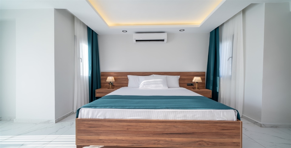 2.Yatak Odası: Çift kişilik yatak, Komodin, Klima, Elbise dolabı, Şifonyer, Banyo ve tuvalet bulunmaktadır.