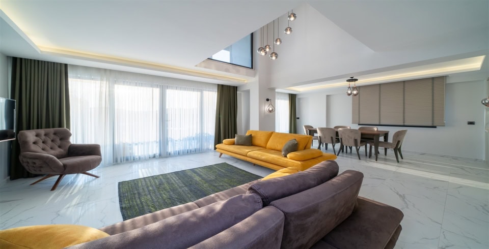 Salon: Oturma grubu, Uydu TV, yemek masası, Klima, Havuz kenarına çıkış bulunmaktadır.